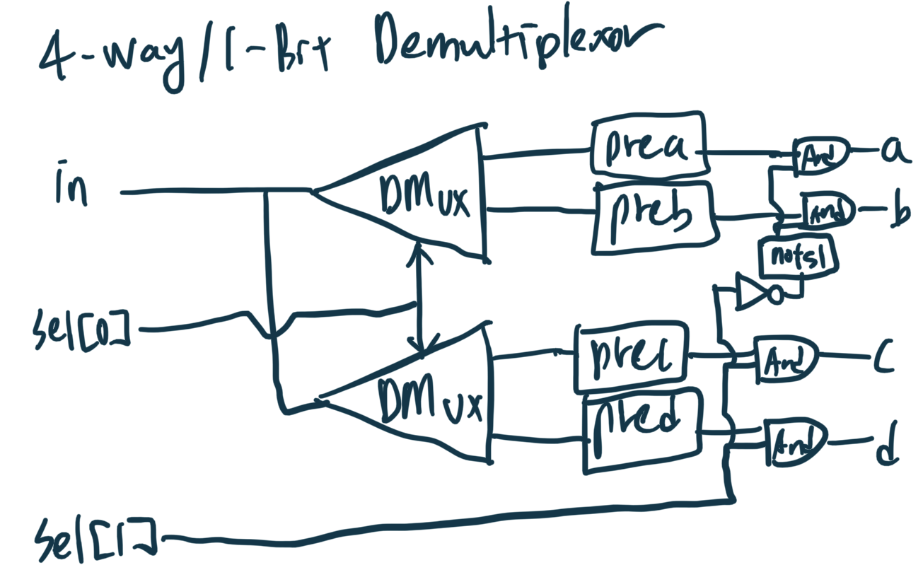 14. Multi-Way/Multi-Bit Demultiplexor (4-Way/1-Bit Demultiplexor)