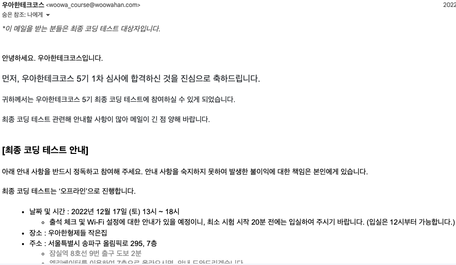[우아한테크코스 5기] 최종테스트 회고(feat. 최종합격)