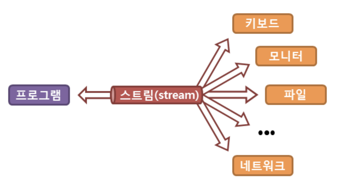 즉, 스트림은 운영체제에 의해 생성되는 가상의 연결 고리를 의미하며, 중간 매개자 역할을 한다.